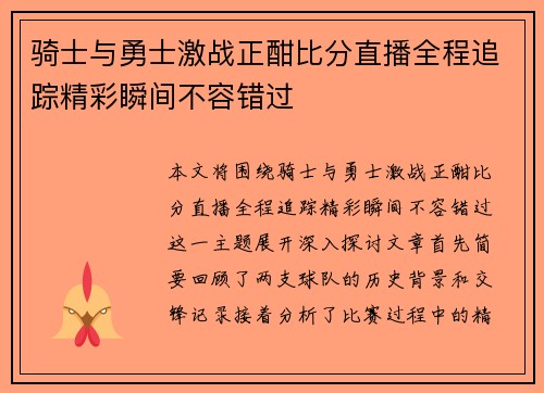 在现代足球的竞技场上,战术与团队精神始终是决定比赛胜负的核心要素。萨斯里斯与布罗斯之间的激烈对决,不仅展现了两位教练在战术布置上的智慧较量,更彰显了球员们在场上协同作战的团队精神。在这场比赛中,双方通过各自独特的战术安排,展开了一场精彩绝伦的博弈。本文将从四个方面深入探讨这一对决所揭示出的足球战术和团队精神的重要性,包括战术创新、阵型变化、心理博弈以及团队协作。通过这些分析,我们能够更好地理解足球...