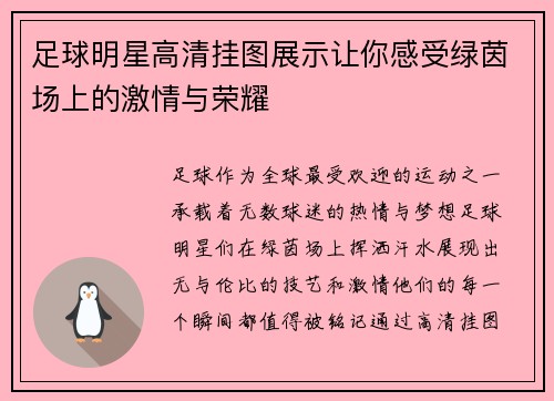 在全球足球历史的长河中,70后出生的一代足球明星以其卓越的才能和辉煌的成就,成为了球迷心中的传奇。本文将从不同角度回顾这些足球巨星们的职业生涯,探讨他们所创造的辉煌与影响。我们将通过四个方面进行详细阐述:一是他们在俱乐部的成就与贡献;二是国家队的拼搏与荣耀;三是个人荣誉及影响力;四是对后辈球员的启示与帮助。希望通过这篇文章,可以让读者更深入地了解70后足球明星们如何书写自己的传奇,并对足球运动产生...